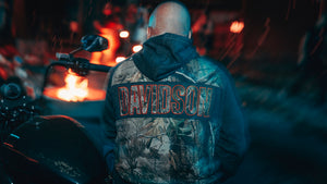 Experience rugged style and comfort with the Harley-Davidson x Realtree Men's APG Twill Zip-Up Jacket. Crafted from heavyweight cotton canvas with a quilted, polyfill-insulated lining, it offers durable warmth for cooler rides. The jersey-lined hood with drawstring, rib-knit cuffs, and hems ensure a snug fit, while the zip-up front and kangaroo pocket provide practicality. Featuring custom Realtree camo graphics and embroidered canvas applique, this jacket combines performance with iconic Harley-Davidson flair. Stay ready for any adventure in this standout piece designed for both function and bold style.