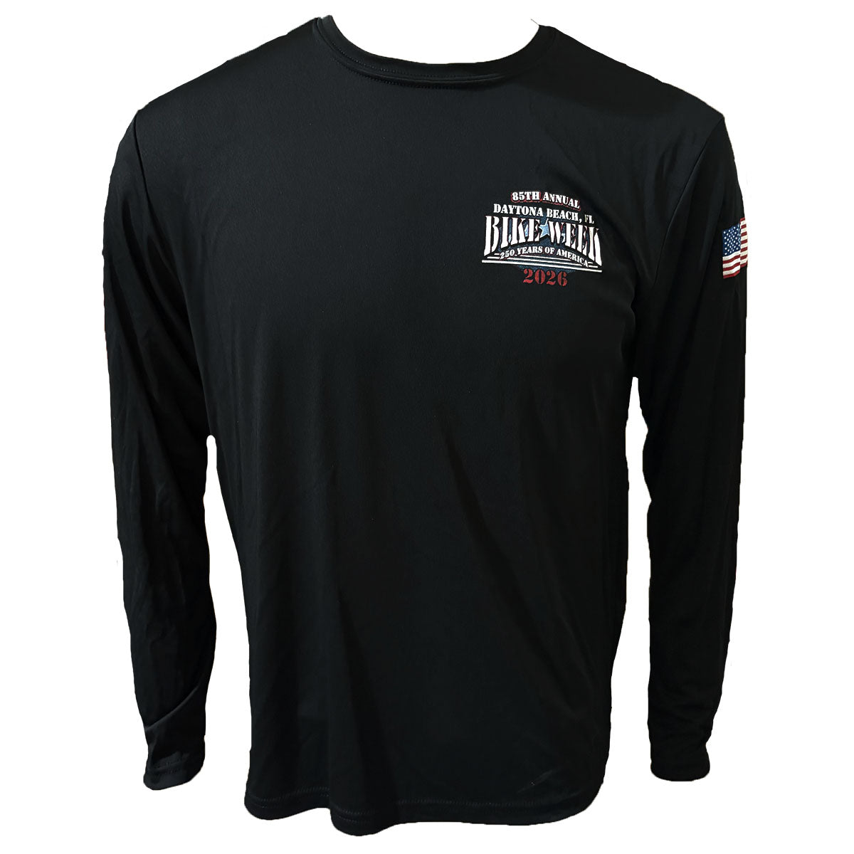 Official Daytona Bike Week 2026 Men's 250 Years Of America Moisture Wicking Long Sleeve Shirt, Black