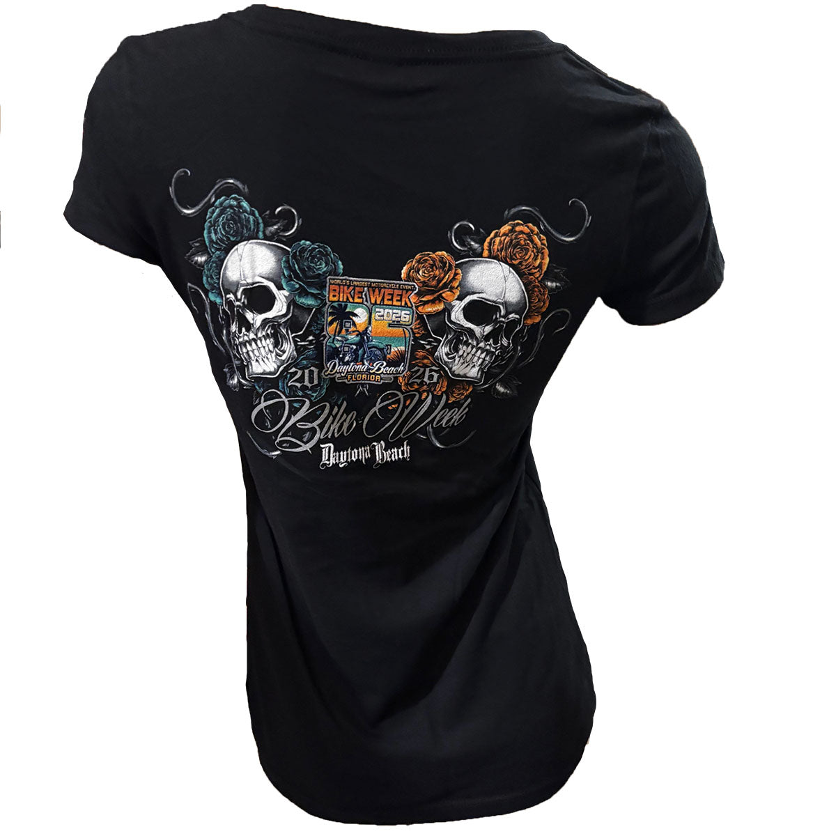 Official Daytona Bike Week 2026 Women's Skull Thorns Short Sleeve Shirt, Black