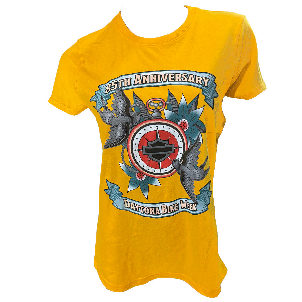 Celebrate the 85th Bike Week with this premium cotton tee featuring a striking compass and birds graphic on the front. The back showcases Teddy Morse's Daytona Harley-Davidson script in bold lettering. Crafted from 100% cotton for breathability and comfort during long rides and events, this limited-edition shirt captures the spirit of the iconic 2026 gathering. Perfect for riders and enthusiasts who want to commemorate this milestone year in style.