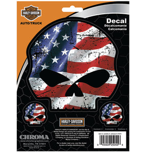 Harley-Davidson RWB Willie G Skull Stick Onz Decal Set, 6 x 8 In Red-White-Blue