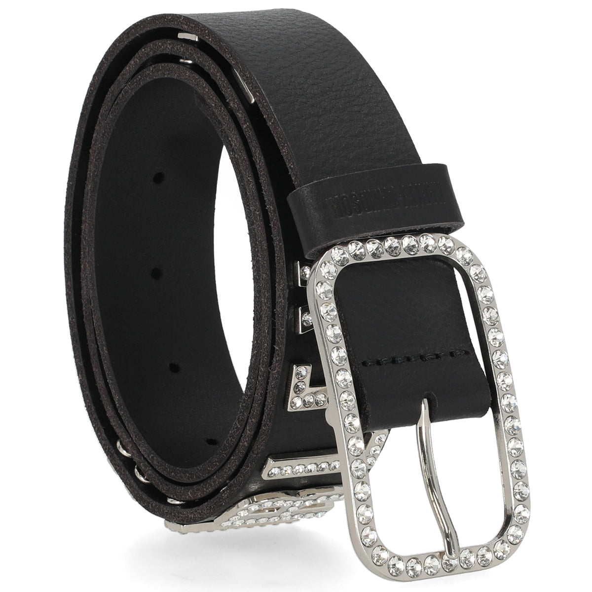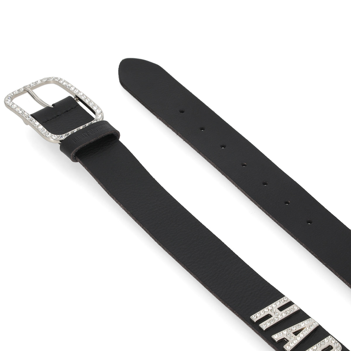 Harley-Davidson Women's Rhinestone Metal Letter Genuine Leather Belt, Black BMW046/08