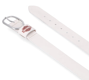Harley-Davidson Women's Rhinestone Bar & Shield Logo Genuine Leather Belt, Black BMW011