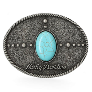 Harley-Davidson® Women's Turquoise Stone Belt Buckle, Antique Nickel Finish MAU009/61