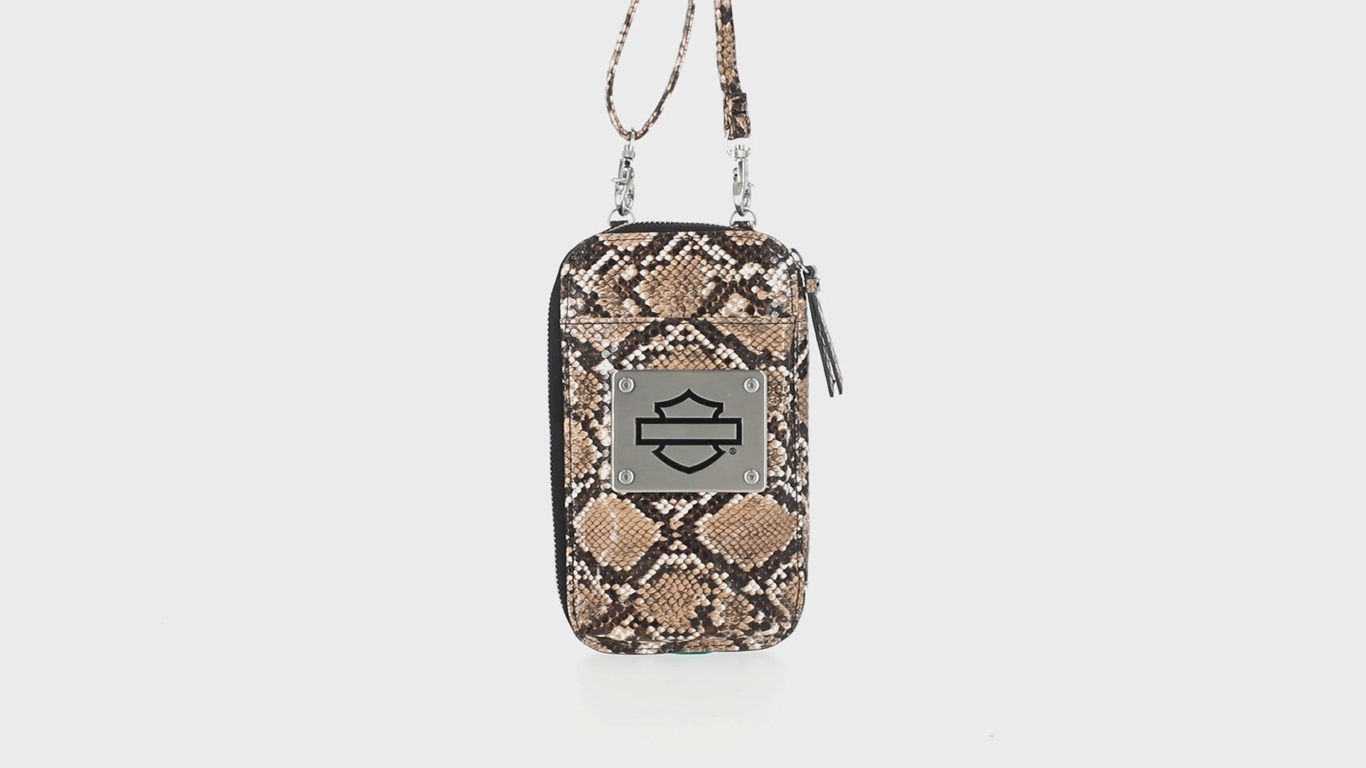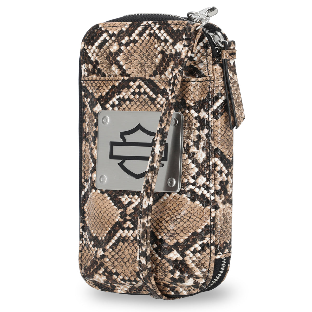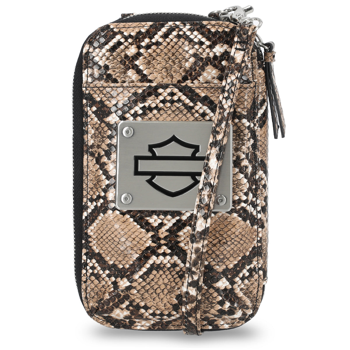 Harley-Davidson Women's Python Print B&S Logo Zip Around Phone Case Wallet, Brown MWW060/01